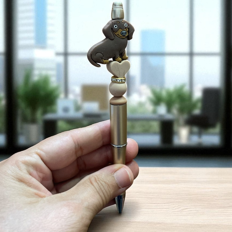 Egyedi mintás szilikon gyöngyös toll - tacskó figurával