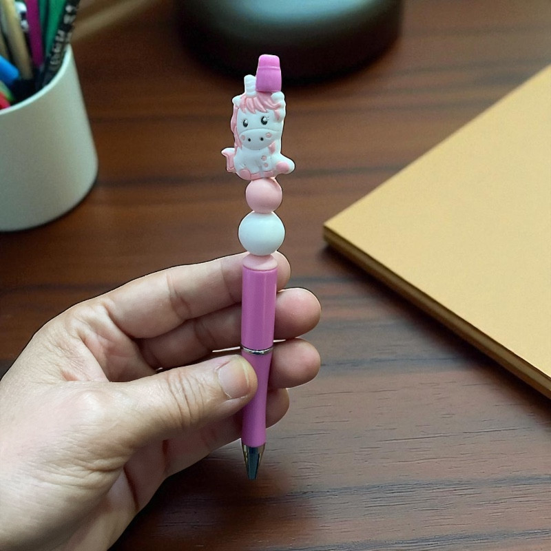 Egyedi mintás szilikon gyöngyös toll - unikornis figurával